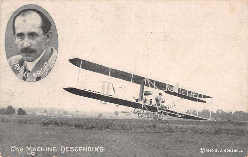 Orville Wright Landing Airplane Pilot Aviation Vintage Postcard AA78148