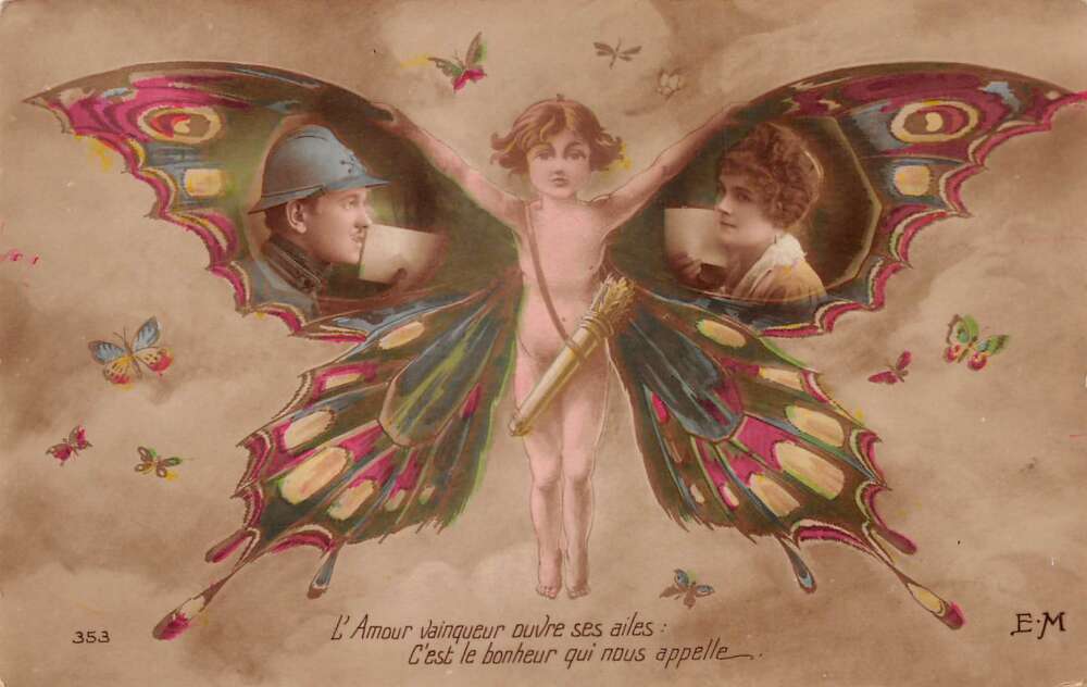 Romance Greetings Fantasy Fairy Butterfly Tinted Real Photo Postcard AA78153