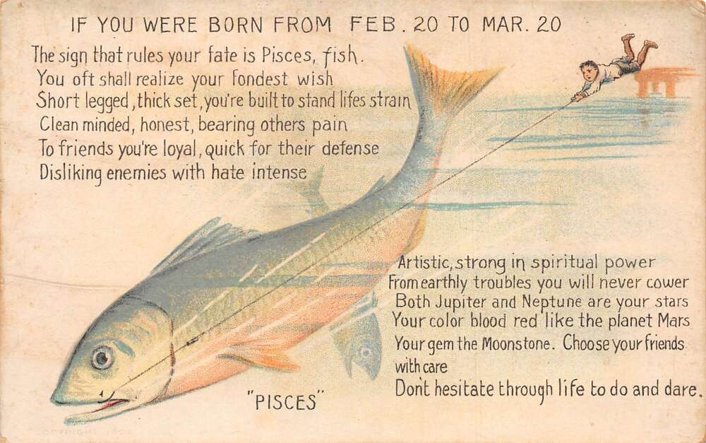 Pisces Astrology Greetings Large Fish Vintage Postcard AA78156