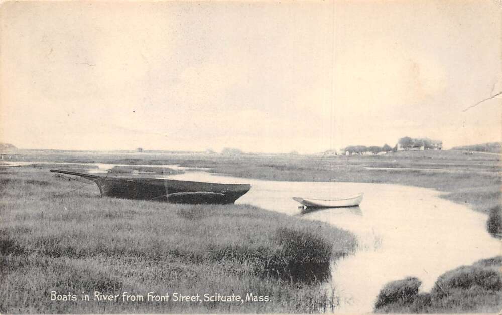 Scituate Massachusetts Boats in River from Front Street Vintage Postcard AA73263