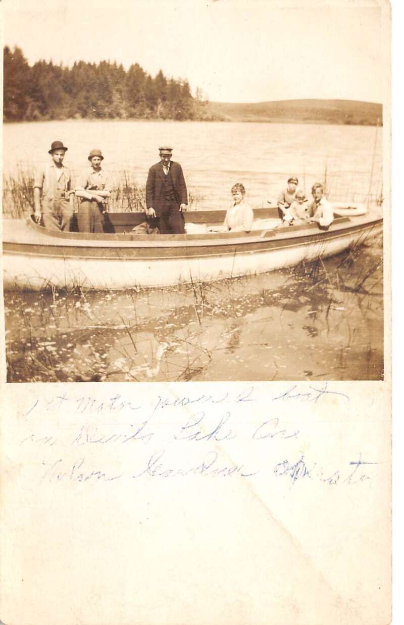 Devils Lake Oregon 1st Motor Boat in Lake Real Photo Vintage Postcard AA108567
