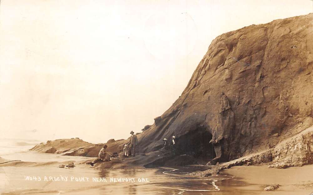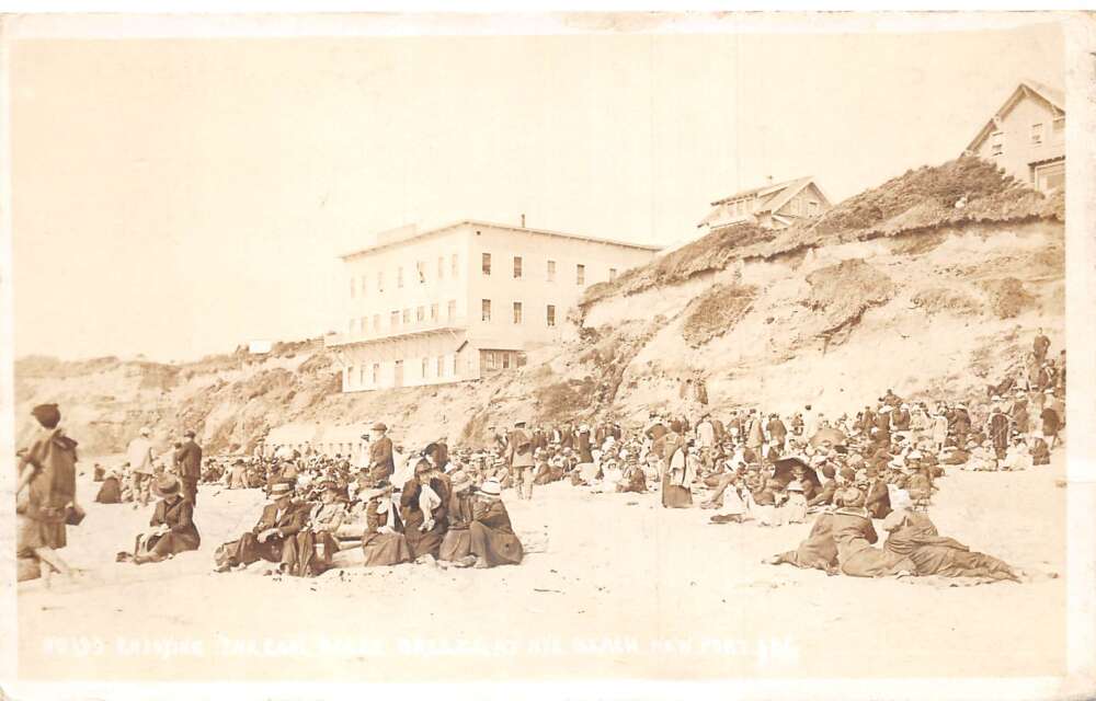 Newport Oregon People on Nye Beach Real Photo Vintage Postcard AA108569