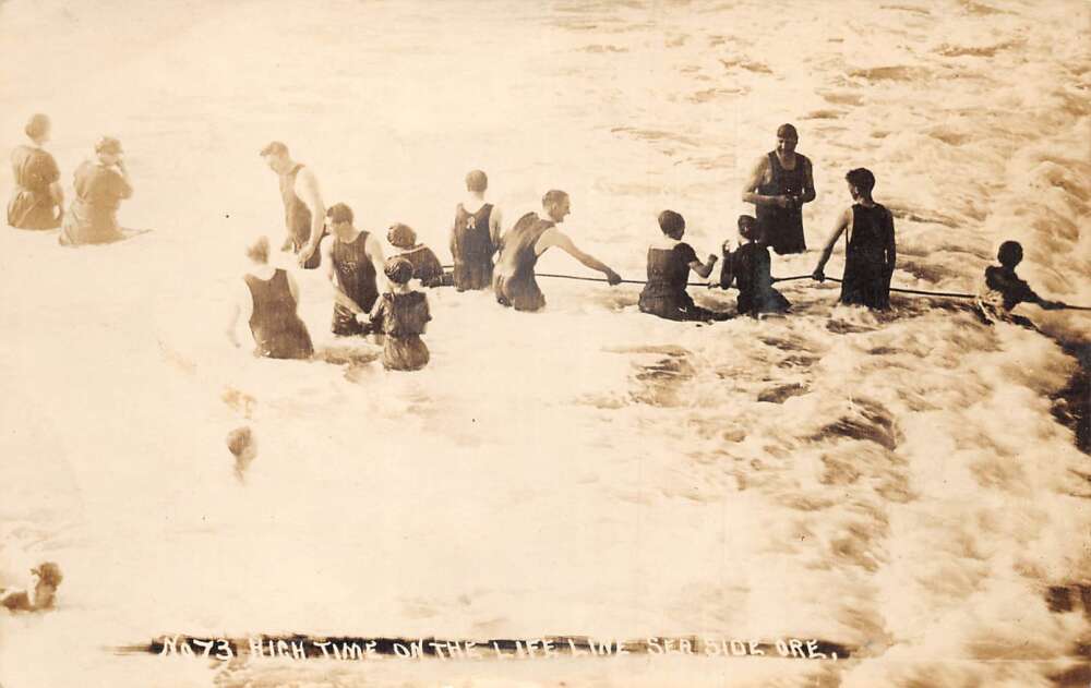 Seaside Oregon Bathing on the Life Line Real Photo Vintage Postcard AA108572