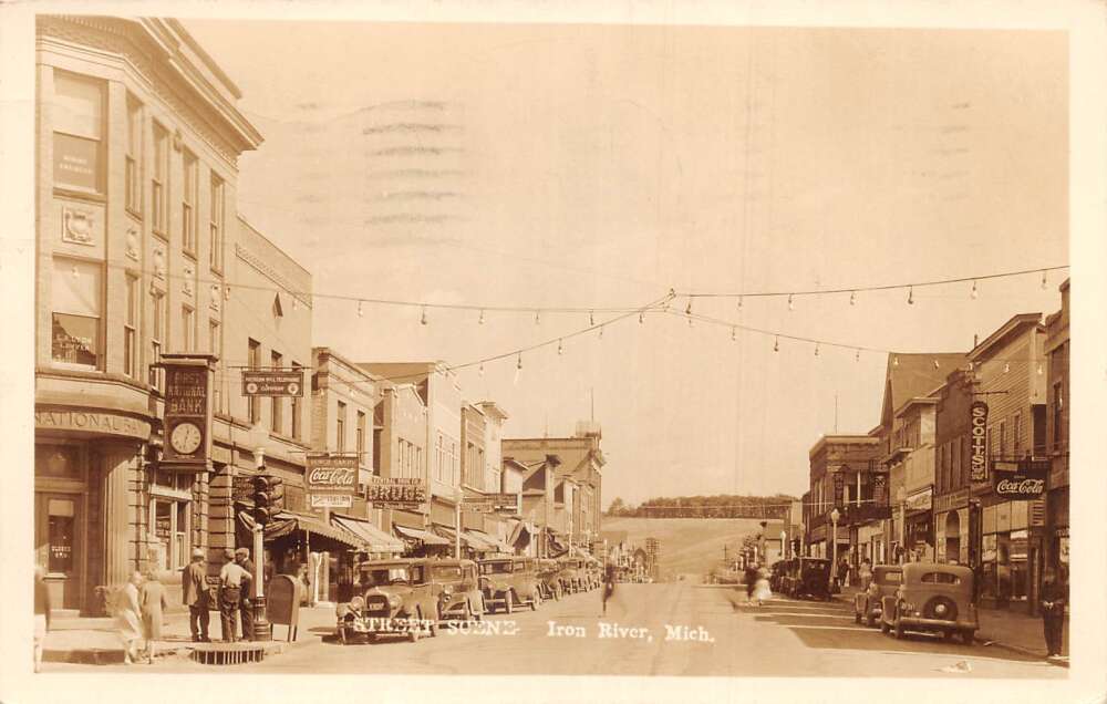 Iron River Michigan Street Scene Coke Sign Real Photo Postcard AA108577