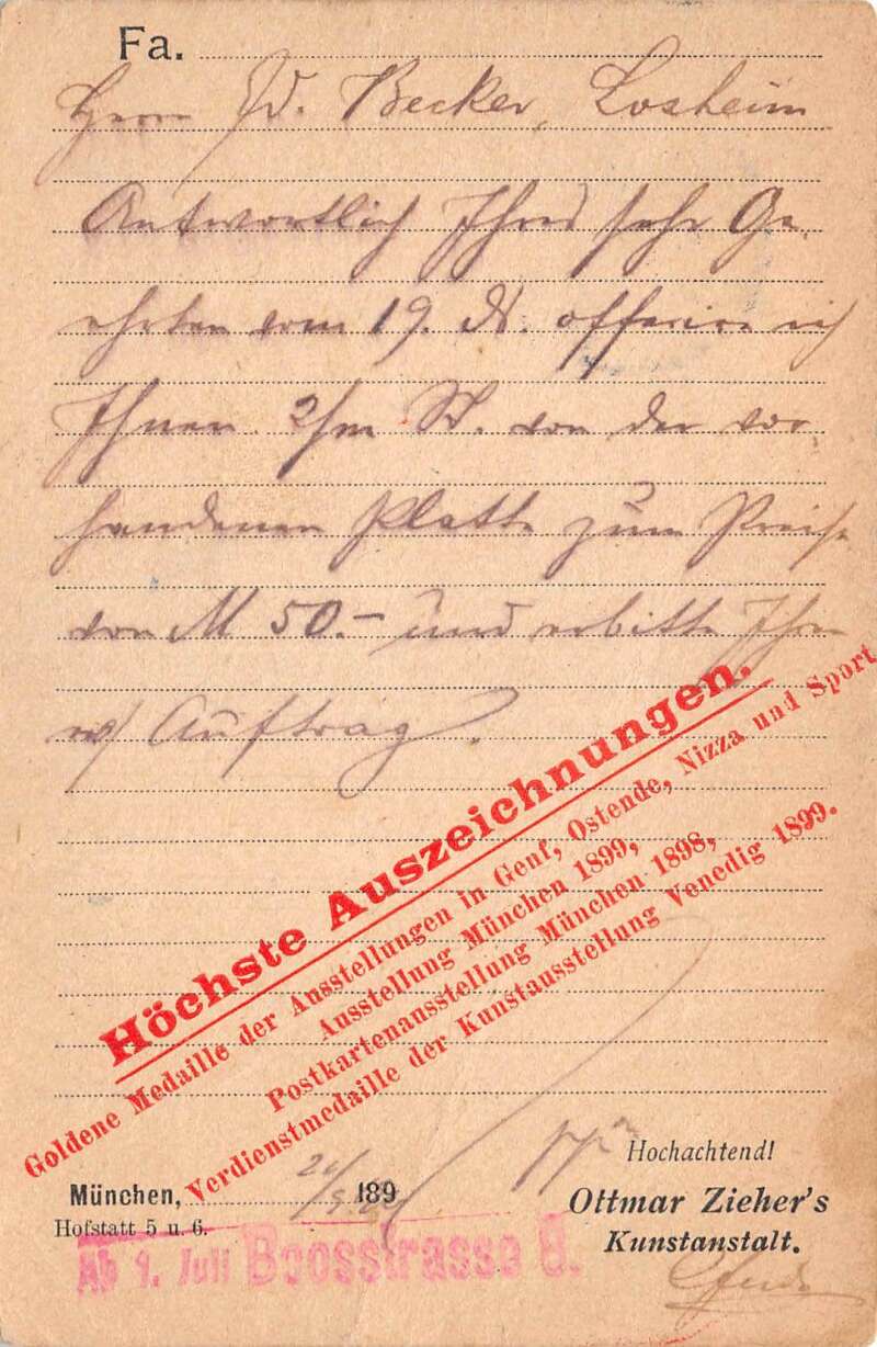 Munchen Munich Germany 1899 Expo Award Note Vintage Postcard AA108588