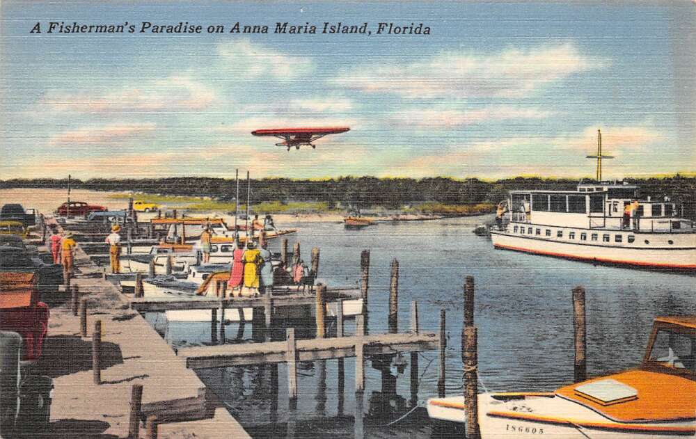 Anna Maria Island Florida Fishermans Paradise Airplane Harbor Postcard AA73315