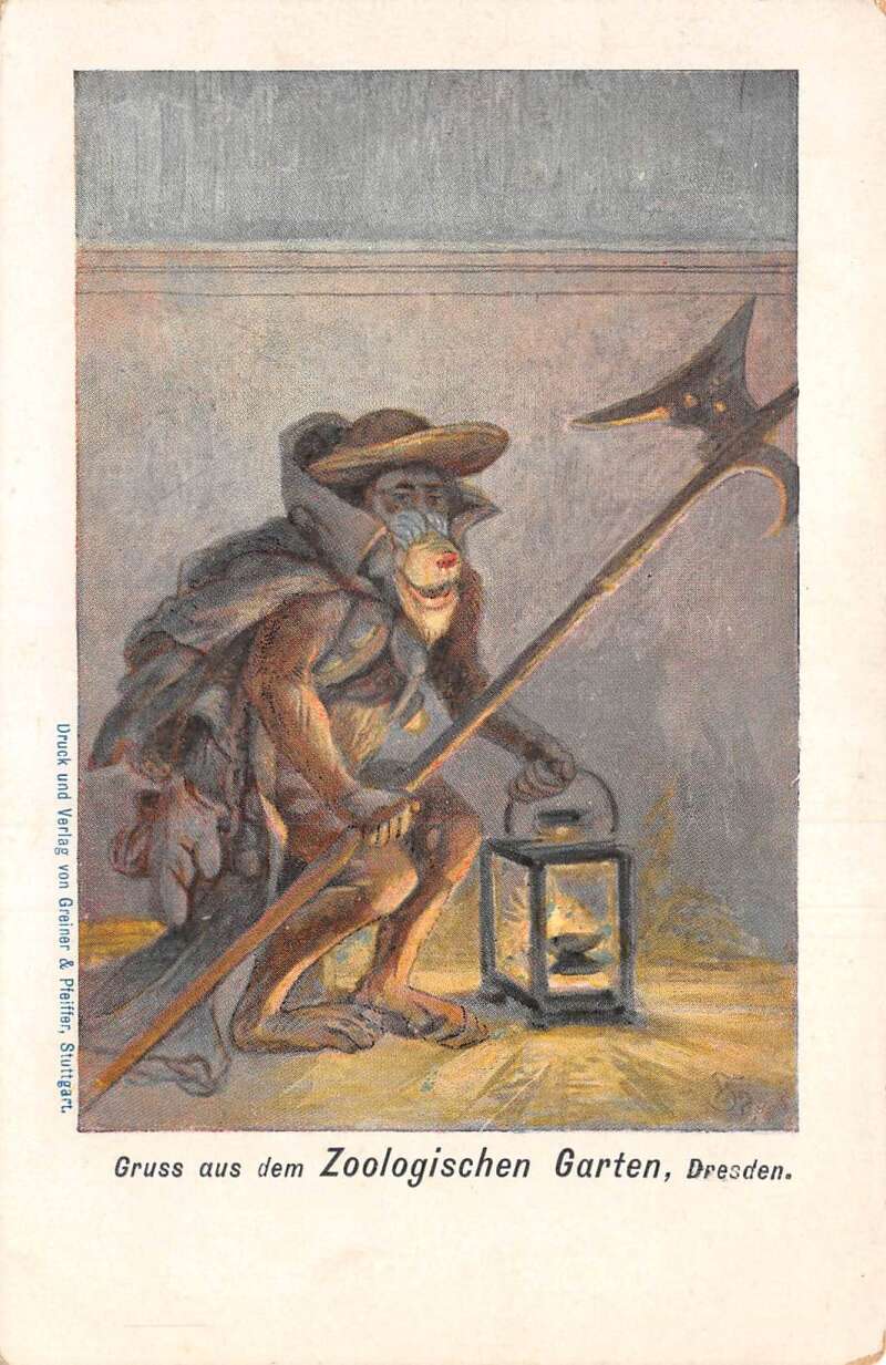 Dresden Germany Zoologischen Garten Gruss aus Dressed Monkey Postcard AA73330