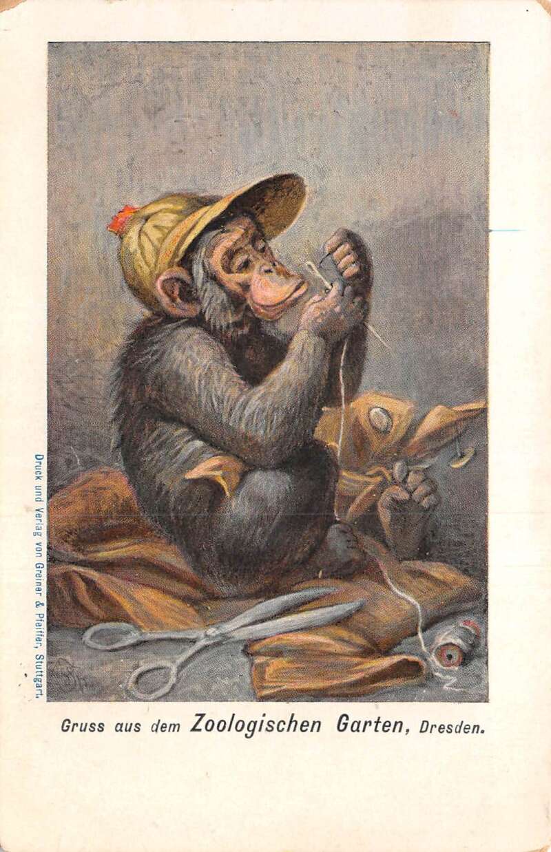 Dresden Germany Zoologischen Garten Gruss aus Dressed Monkey Sewing PC AA73331