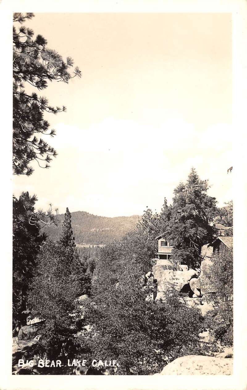 Big Bear Lake California Cabins Scenic View Real Photo Vintage Postcard AA108996