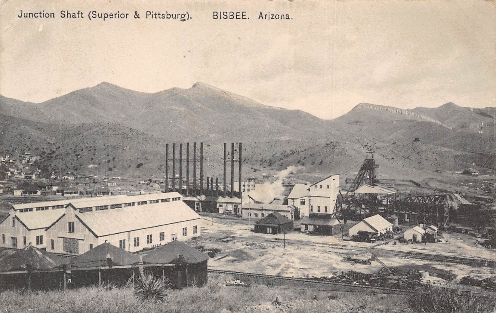 Bisbee Arizona Junction Shaft, B/W Lithograph Vintage Postcard U12269