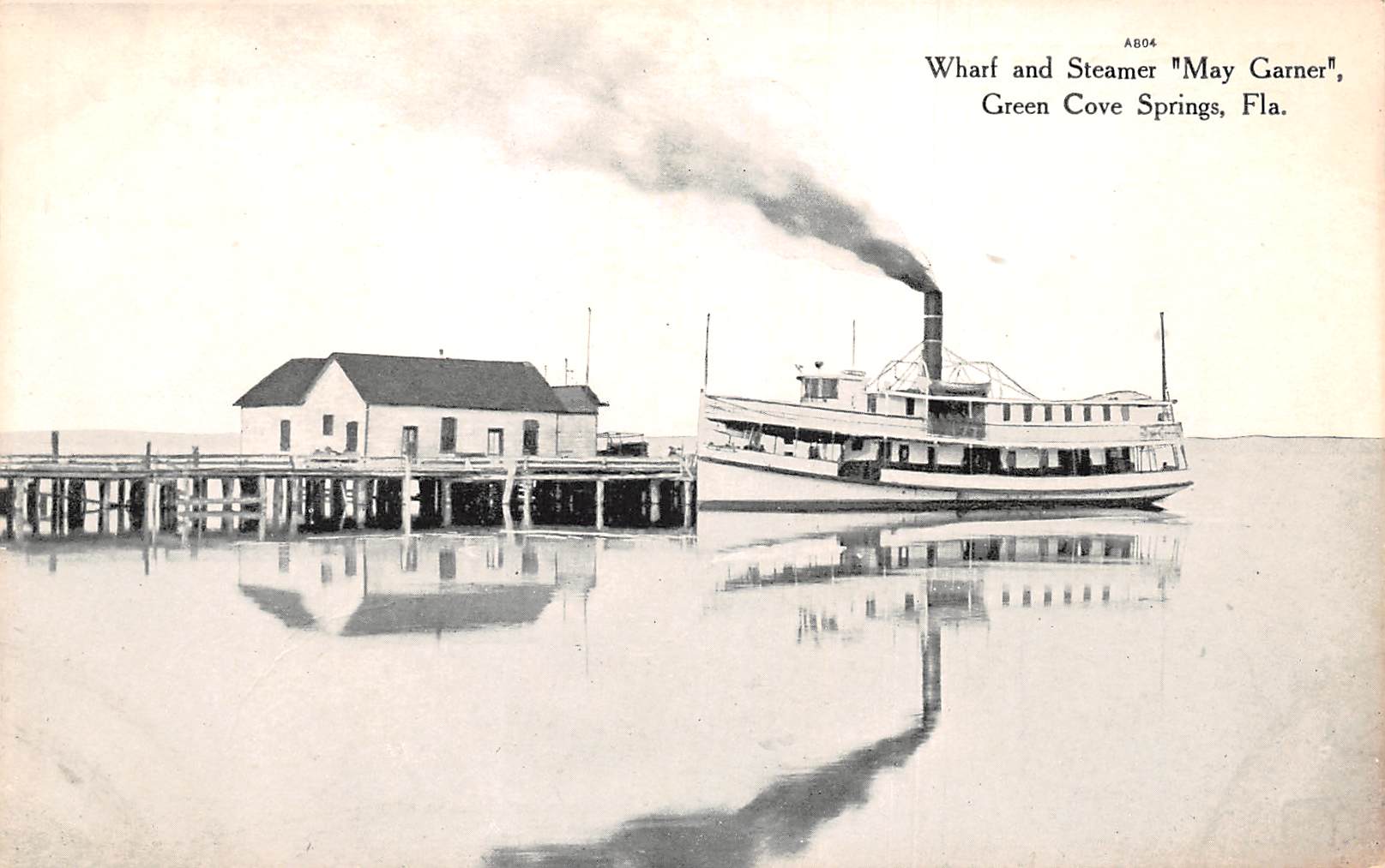 Green Cove Springs Florida Wharf & steamer ” May Garner”, B/W Photo Print PCU12278