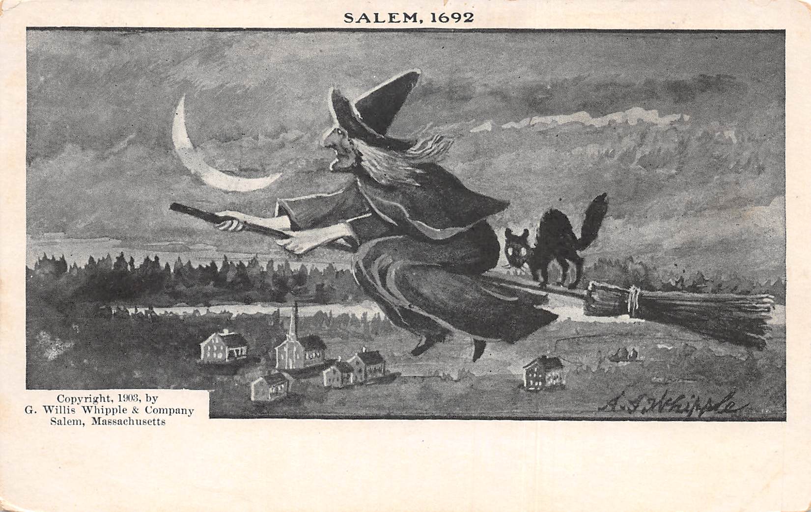 Salem Massachusetts Salem, 1692,Witch On Broomstick, Artist Signed Whipple & Co., PC U12283