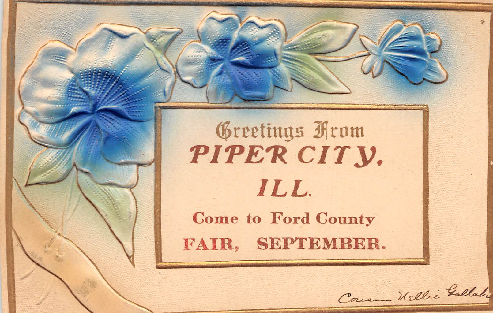 Piper City Illinois Ford County Fair, Airbrushed Flowers, Vintage PC U12284