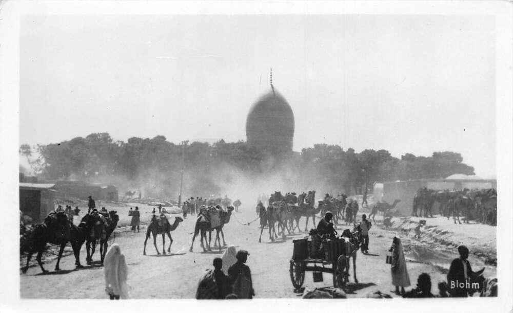 Persian Gulf Command Iran Camels in Street Real Photo Vintage Postcard AA109268