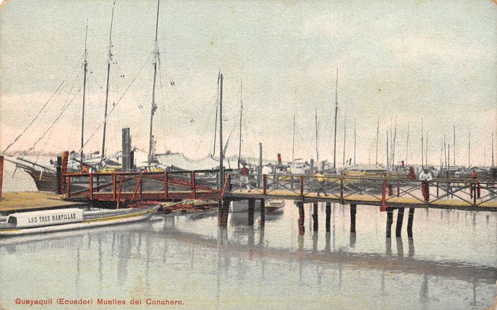 Guayaquil Ecuador Muelles de Conchero Ships at Dock Vintage Postcard AA109273