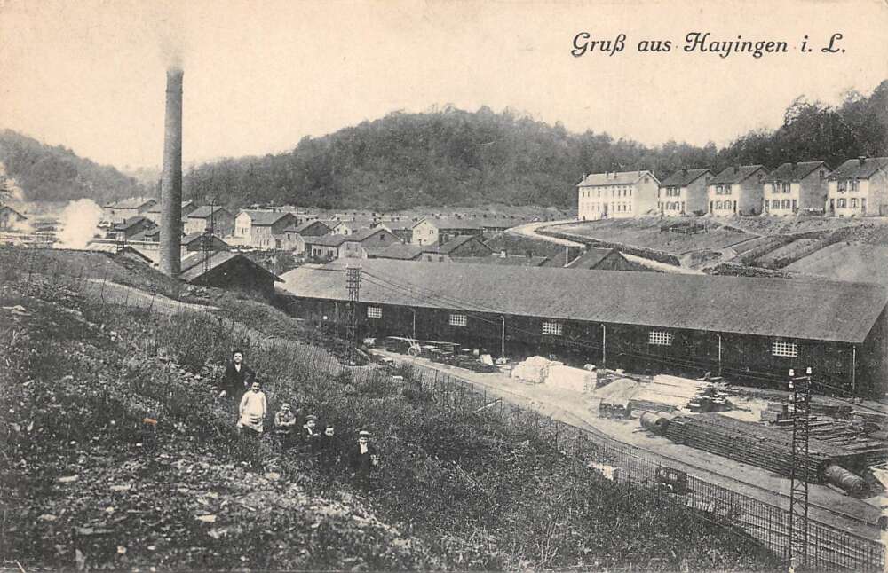Hayingen Germany Children by Lumber Yard Vintage Postcard AA1100917