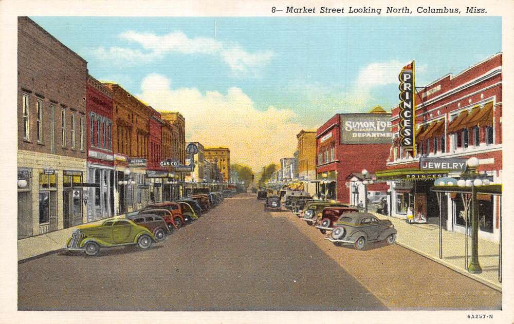 Columbus Mississippi Market Street Looking North Vintage Postcard AA111076