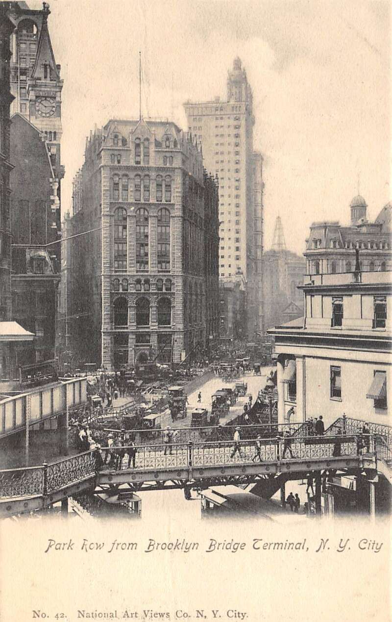 New York Park Row from Brooklyn Bridge Terminal Vintage Postcard AA111085