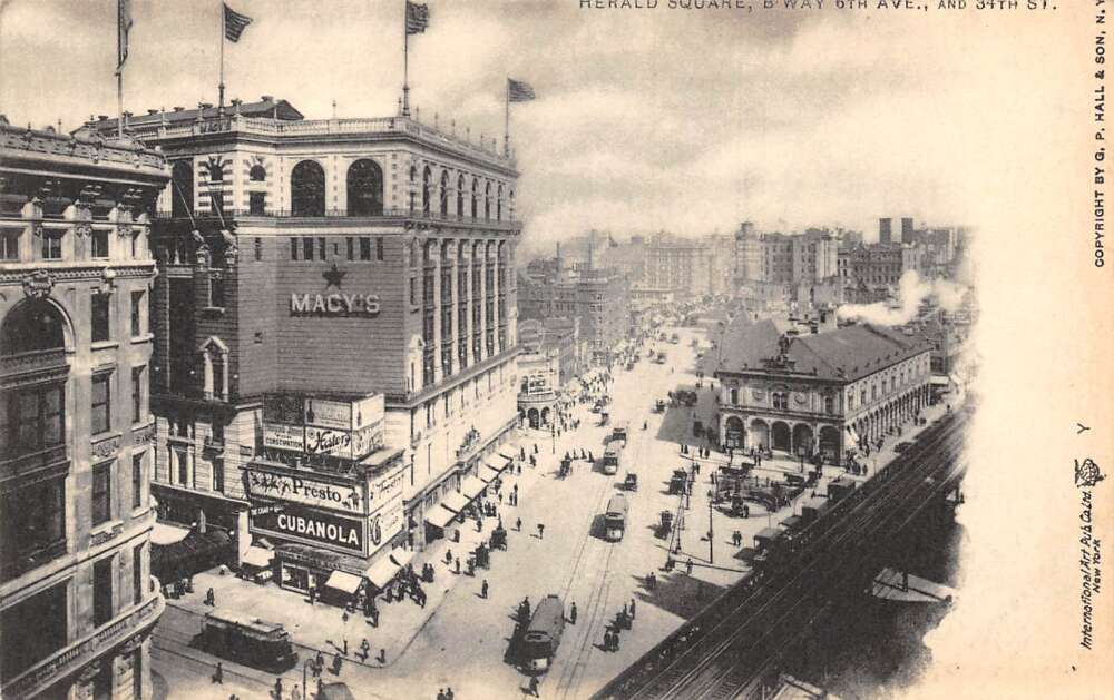 New York Herald Square Macys Street Scene Vintage Postcard AA111090