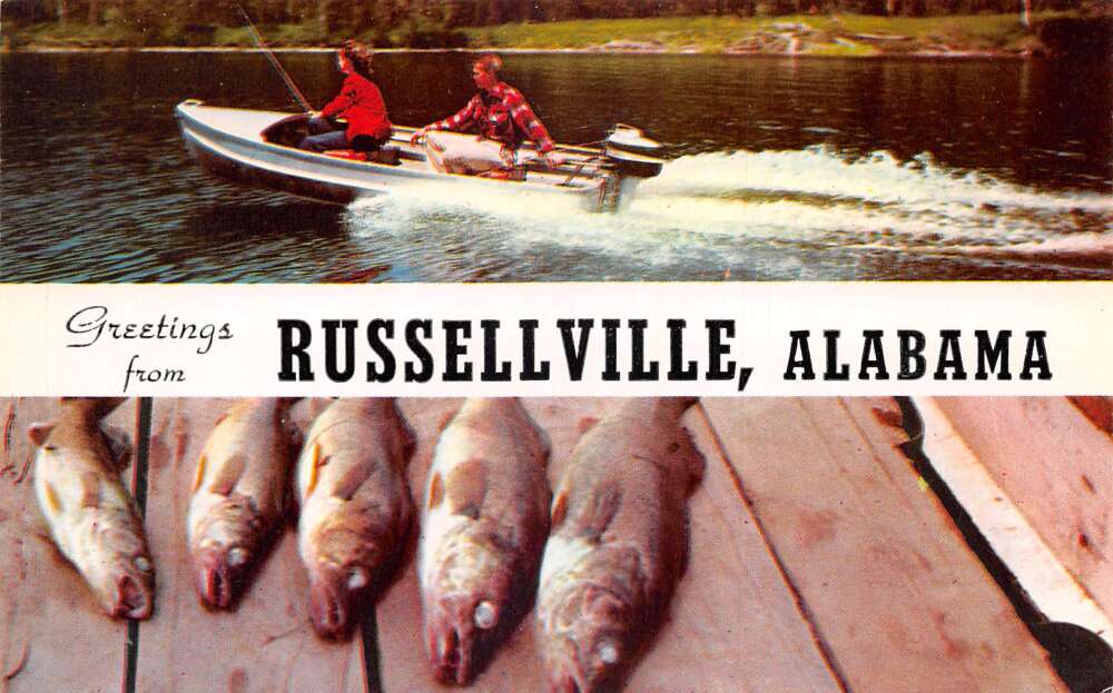 Russellville Alabama Fishing Greetings Vintage Postcard AA109240