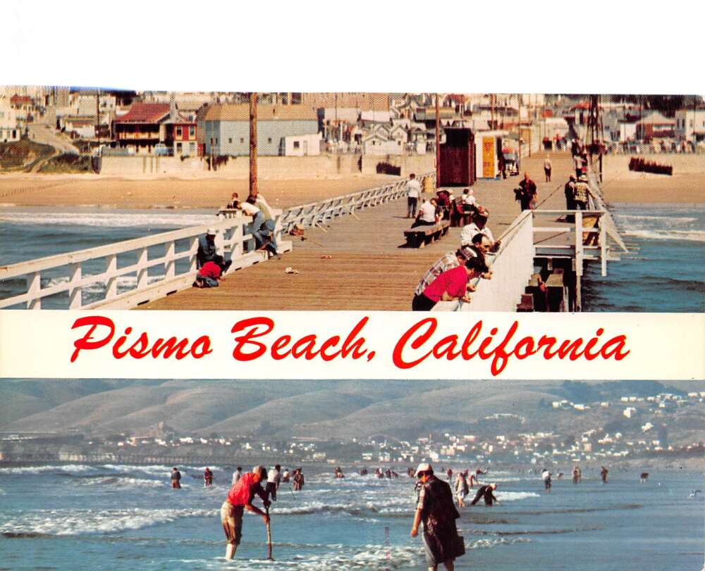 Pismo Beach California Fishing Pier and Clam Diggers Vintage Postcard AA109243