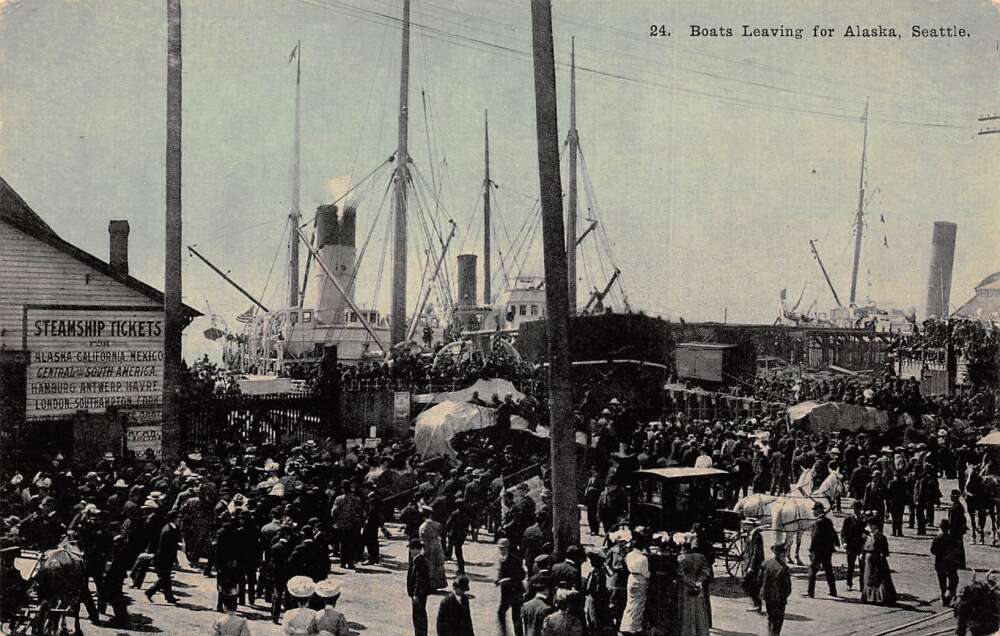 Steamship Docks Ships Heading to Alaska Seattle Vintage Postcard AA72661
