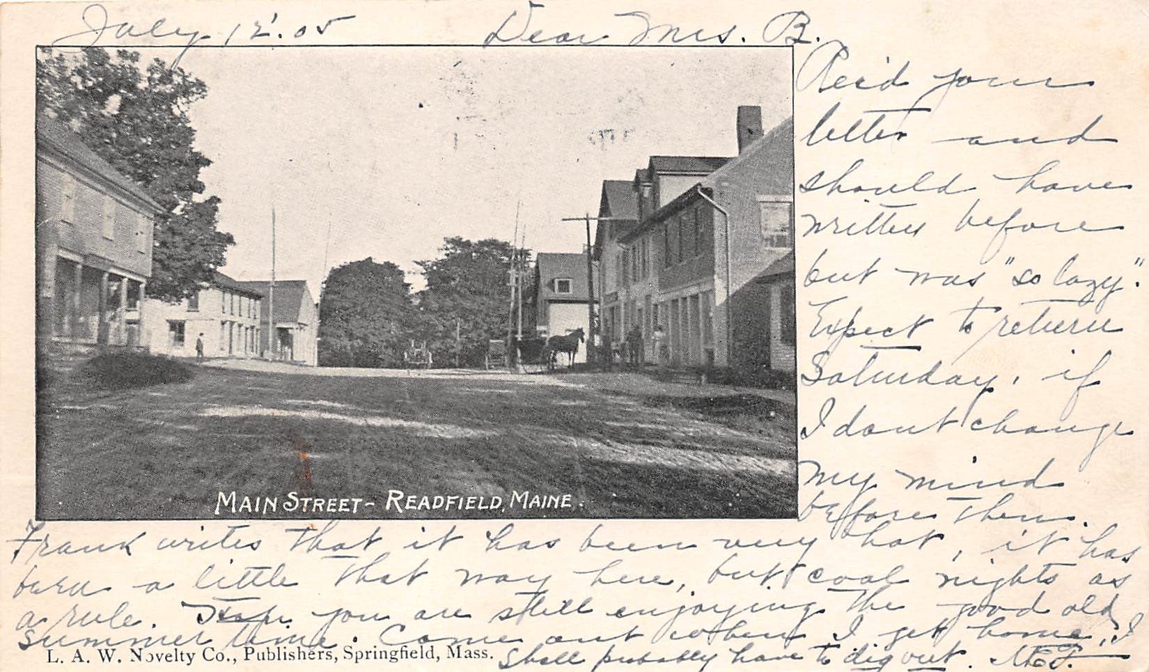 Readfield Maine Main Street, Undivided Back, Vintage Postcard U11850