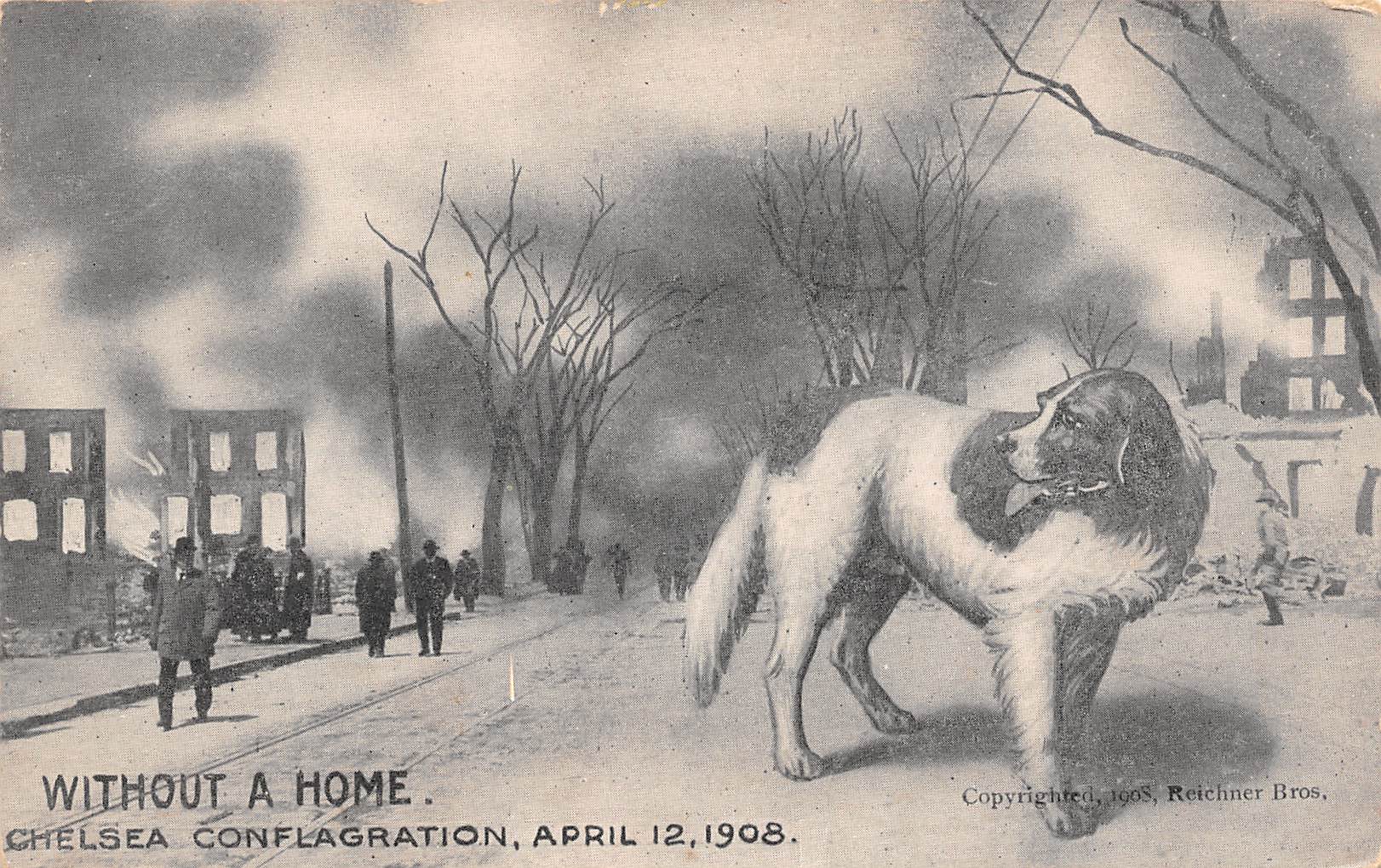 Chelsea Massachusetts Chelsea Conflagration,Great Fire Scene, B/W Lithograph PC U8458