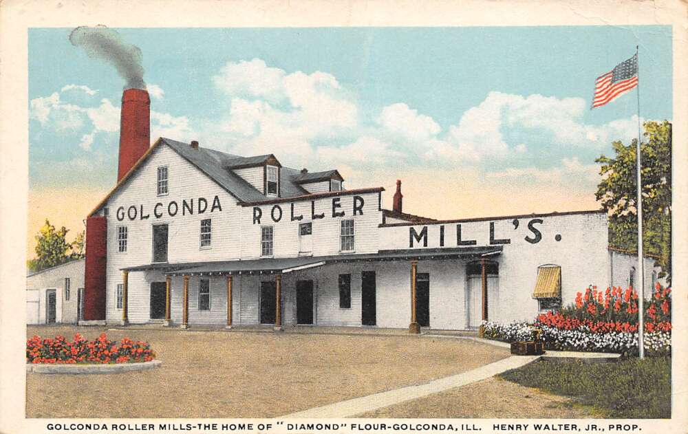 Golconda Illinois Golconda Roller Mills, White Border, Vintage Postcard U16369