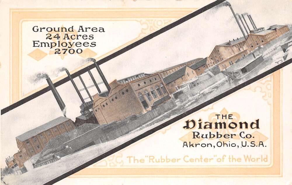Akron Ohio The Diamond Rubber CO., Color Lithograph Vintage Postcard U16372