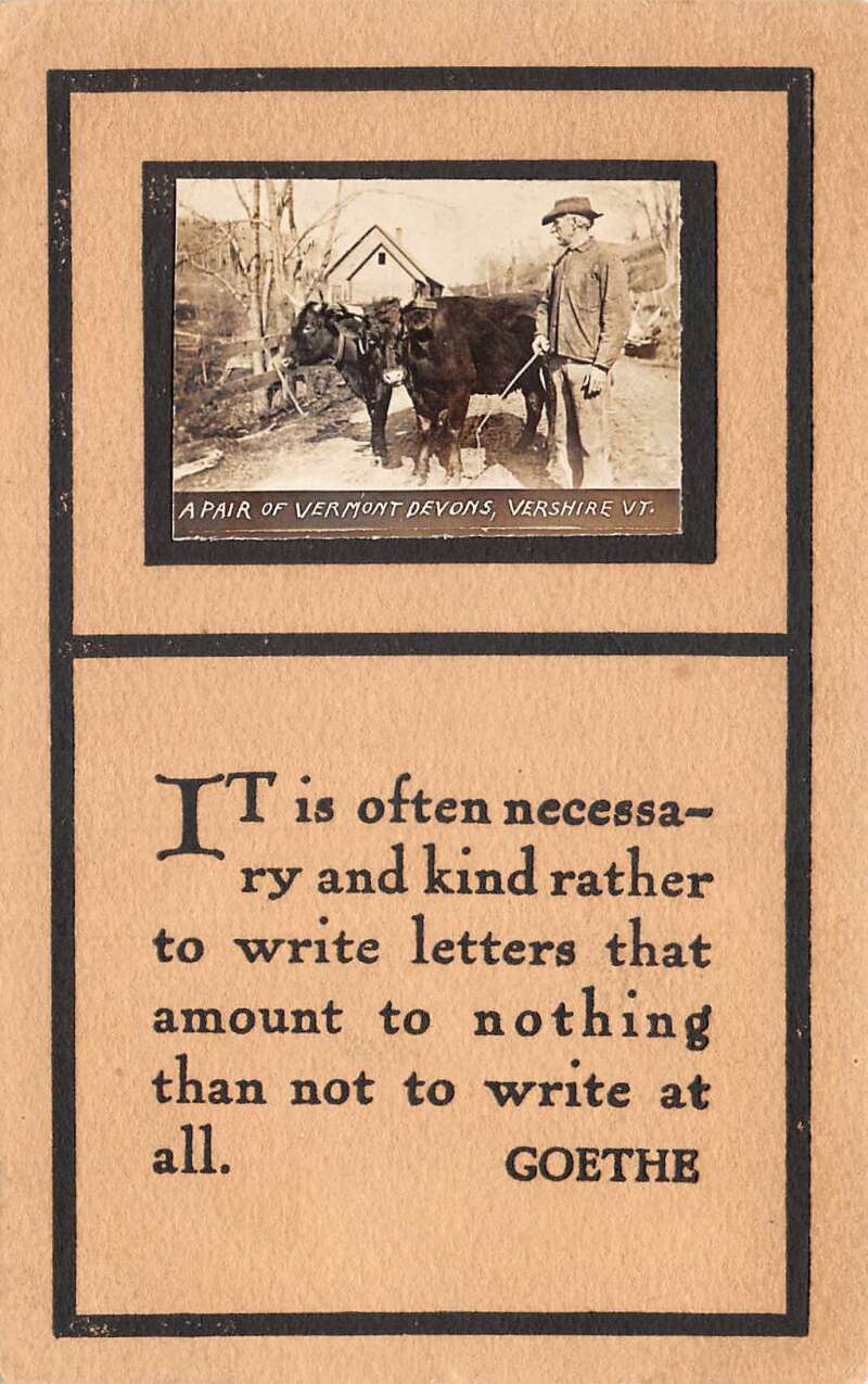 Vershire Vermont A Pair of Vermont Devons Goethe Quote Real Photo PC AA73833