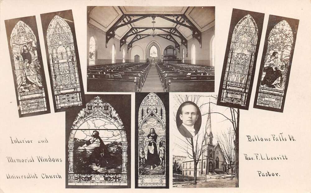Bellows Falls Vermont Universalist Church Memorial Windows Real Photo PC AA73835