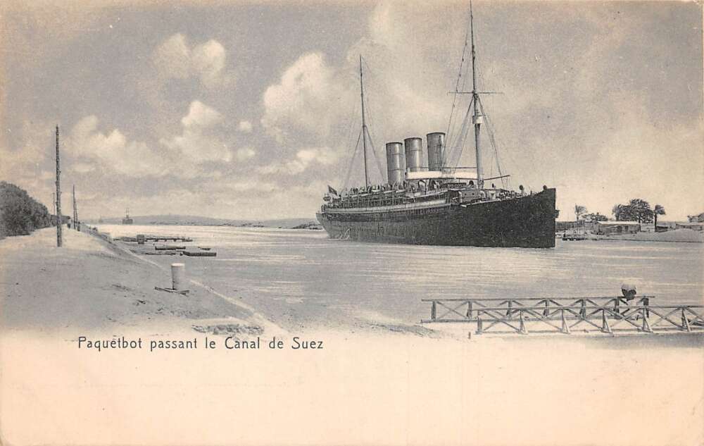 Suez Canal Egypt Paquetbot Passant Ship Scenic View Vintage Postcard AA73837