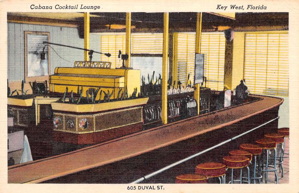 Key West Florida Cabana Cocktail Lounge Interior Vintage Postcard AA72589