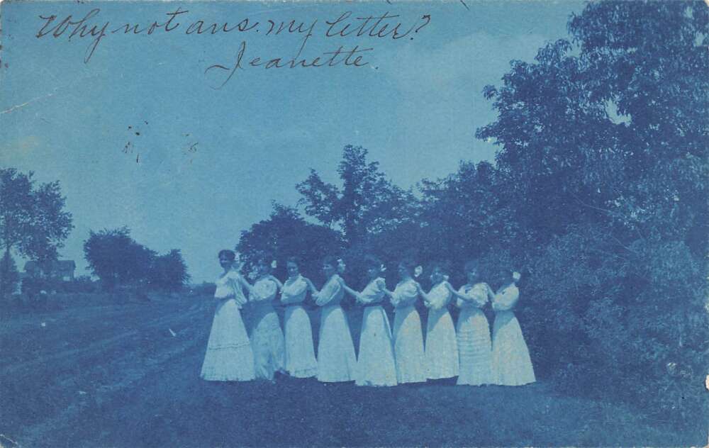 Waterville Ohio Women in White Dresses Cyanotype Blue Real Photo PC AA72590