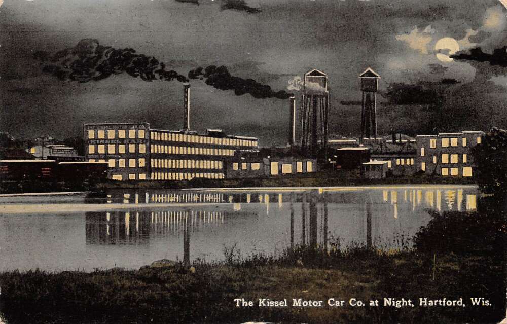 Hartford Wisconsin Kissel Motor Car Co Factory at Night Vintage Postcard AA72591