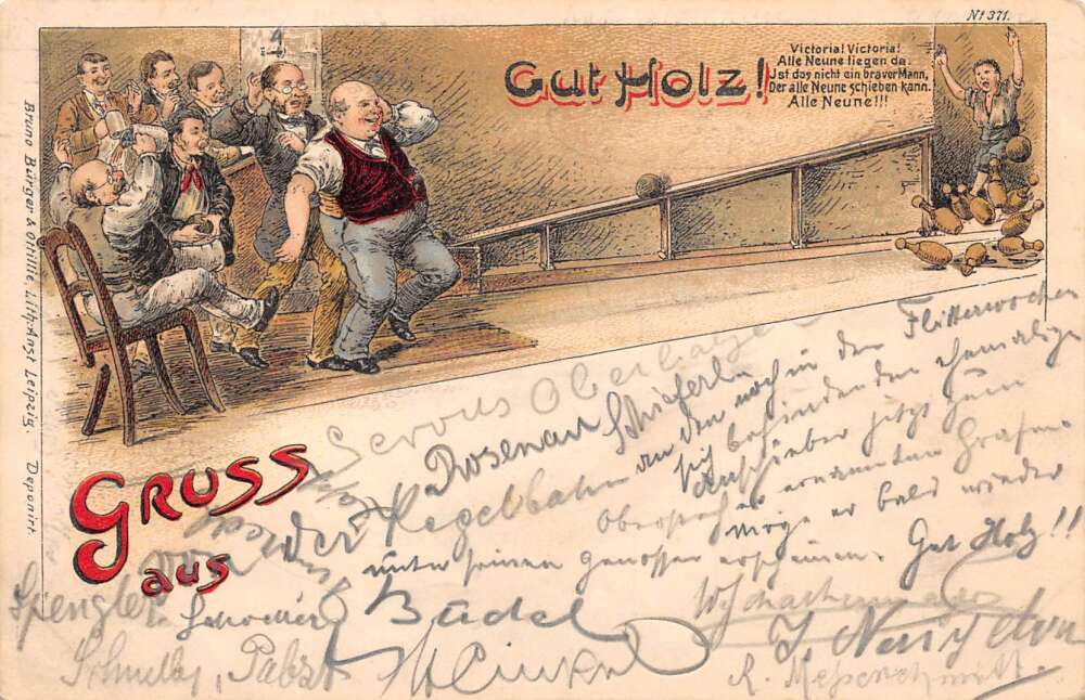 Men Drinking and Bowling Gruss aus German Greetings Vintage Postcard AA109556