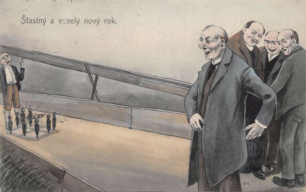 Czech New Year Greetings Bowling Alley Vintage Postcard AA109557