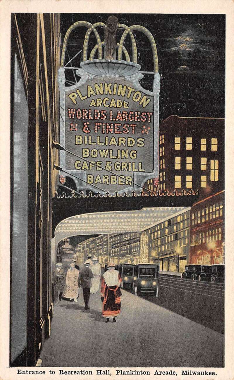 Milwaukee Wisconsin Plankinton Arcade Bowling Alley Vintage Postcard AA109564