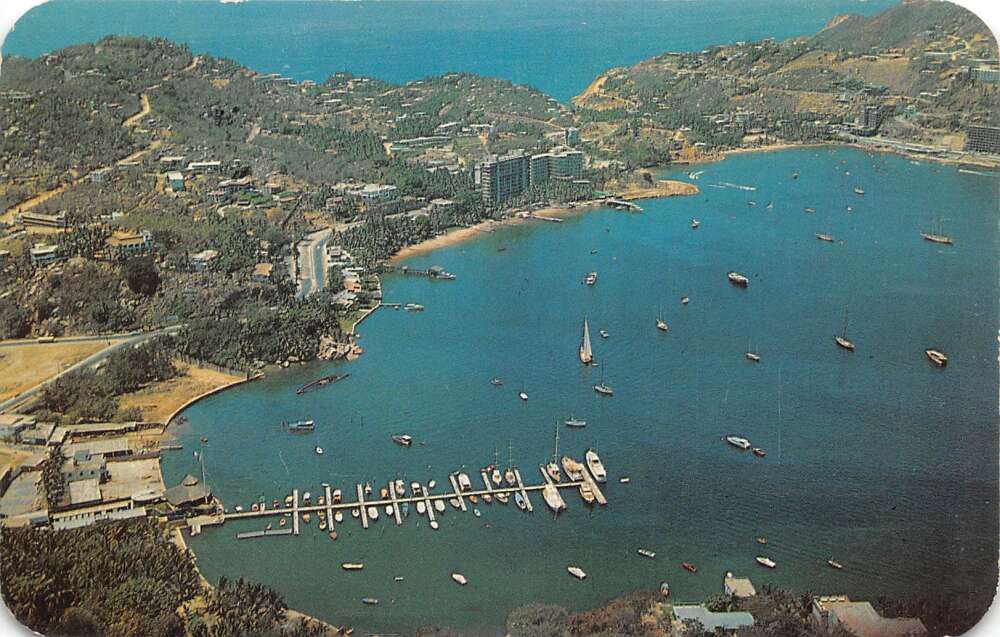 Acapulo Mexico Aerial View Bay and Yacht Harbor Vintage Postcard AA112300