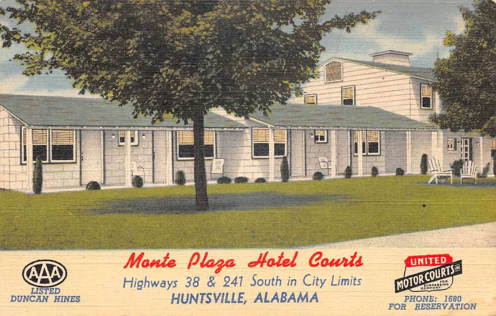 Huntsville Alabama Monte Plaza Hotel Courts Linen Vintage Postcard AA109483