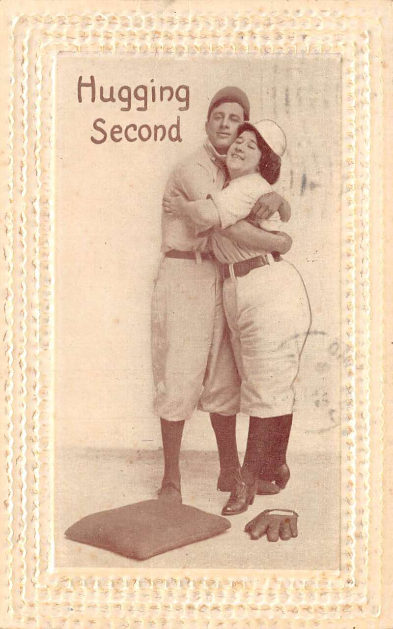 Baseball Sports Greetings Hugging Second Romance Humor Postcard AA73812