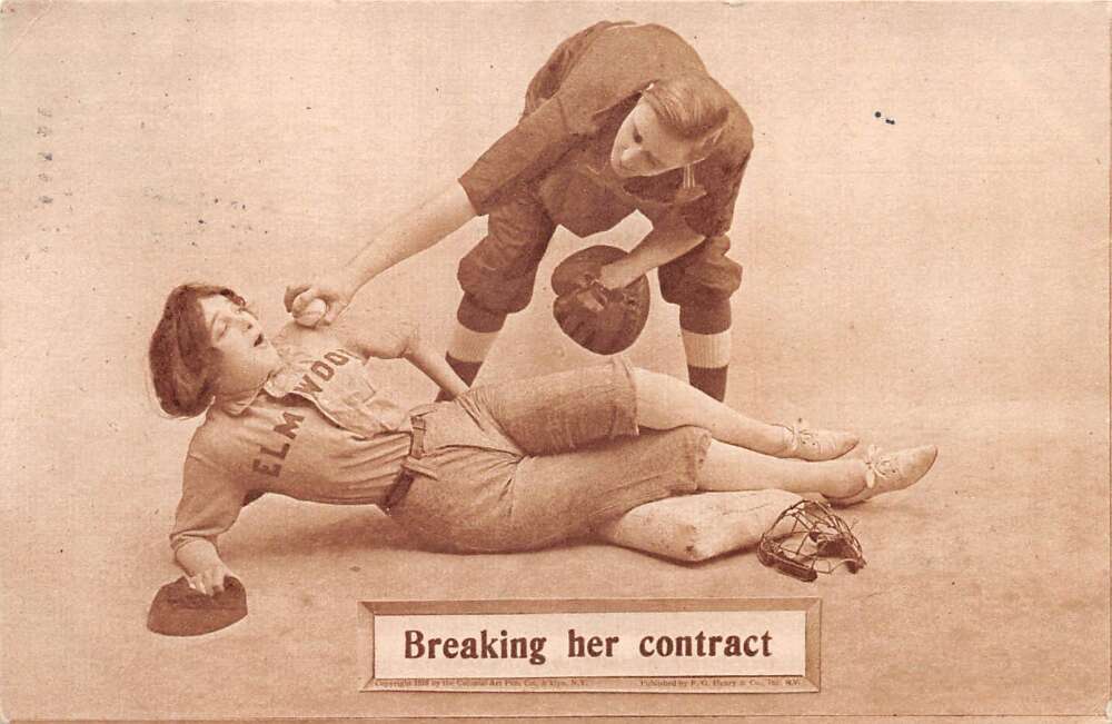 Baseball Sports Greetings Breaking Her Contract Romance Humor Postcard AA73813