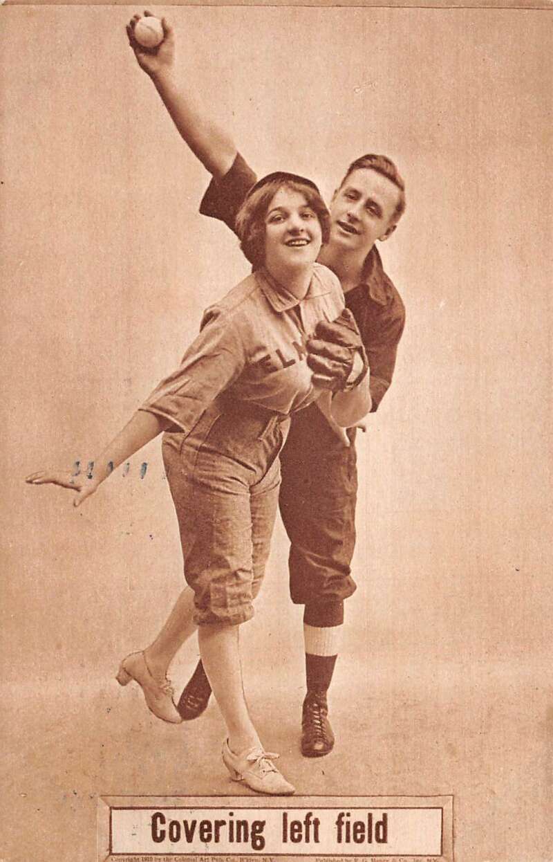 Baseball Sports Greetings Covering Left Field Romance Humor Postcard AA73814