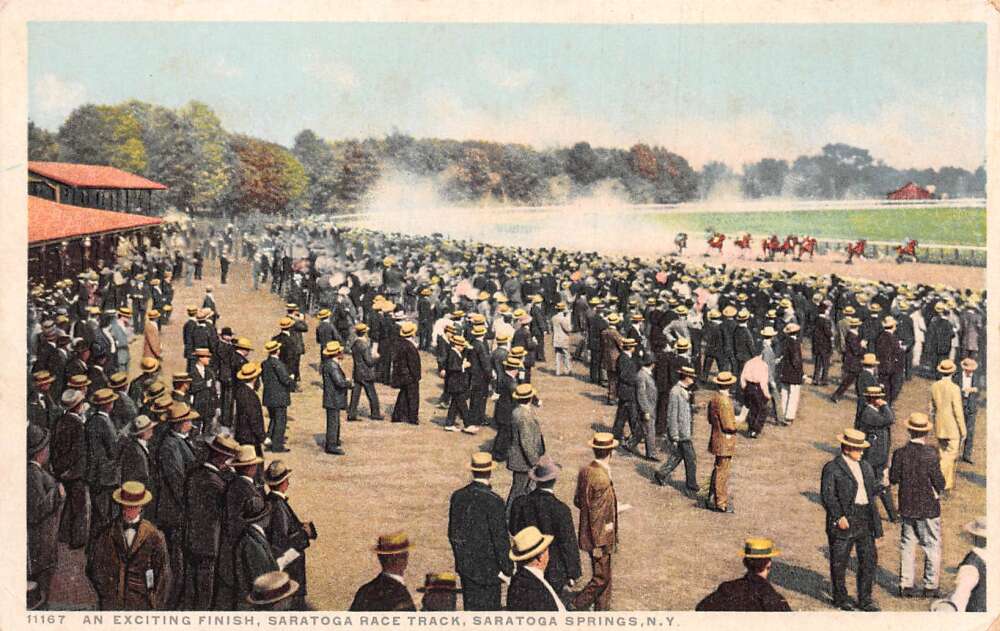 Saratoga Springs New York Race Track “Exciting Finish” Detroit Postcard AA73821