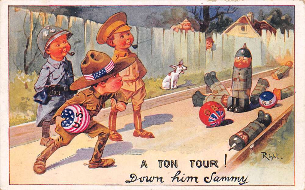 WW2 Comic USA Britian Bowling German Soldiers Vintage Postcard AA109536