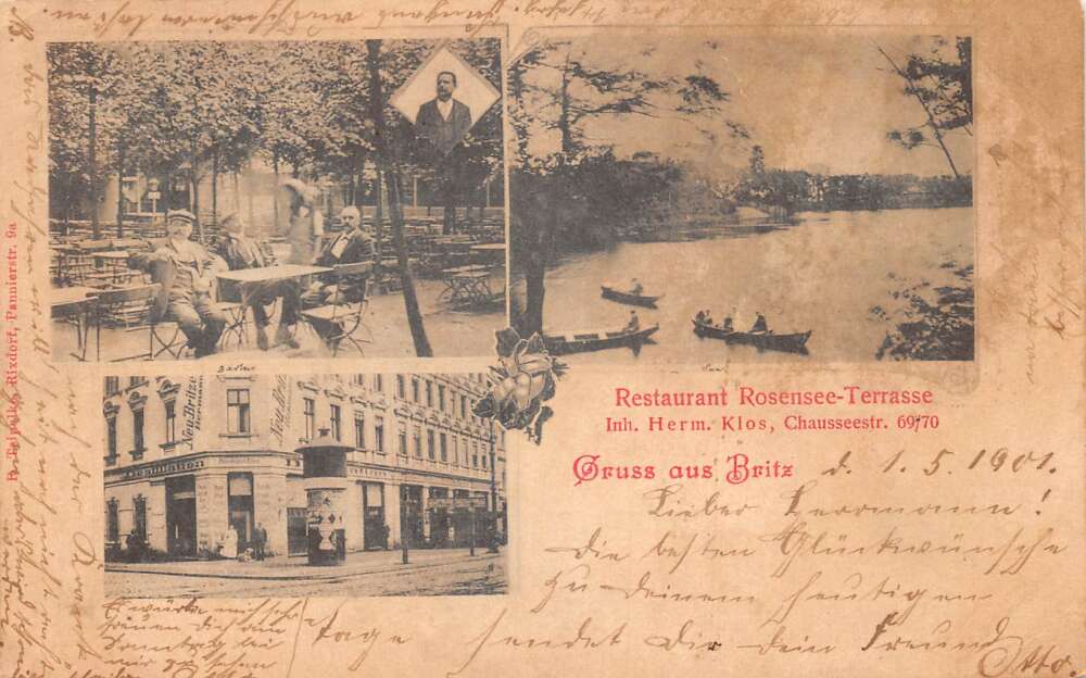 Britz Germany Rosensee Terrasse Restaurant Gruss aus Vintage Postcard AA109543