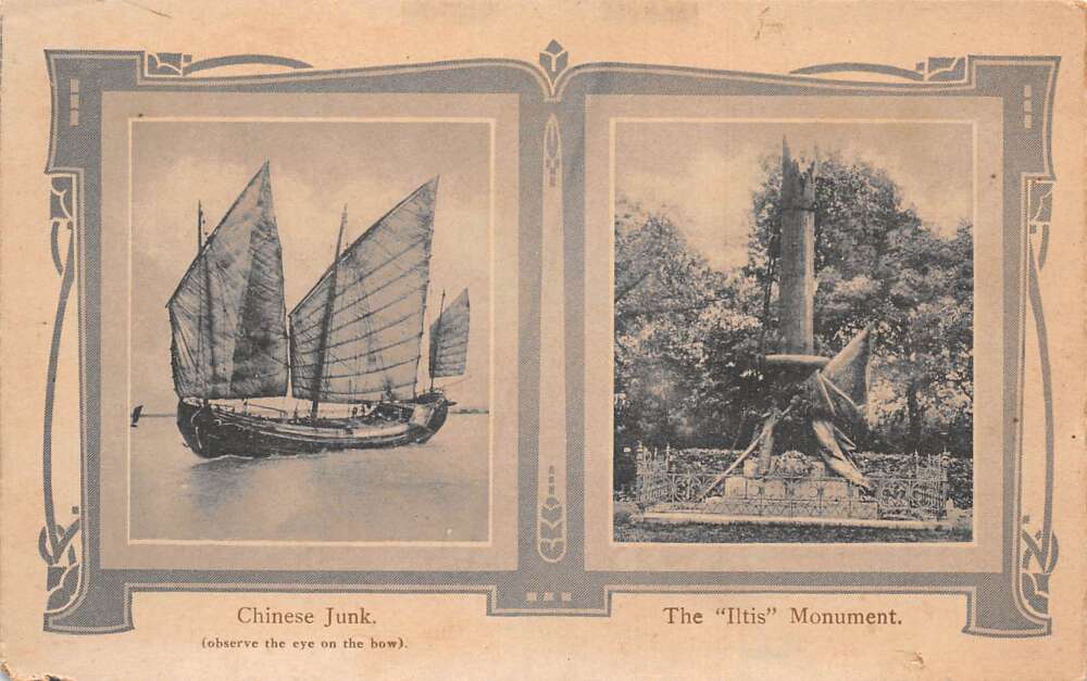 Shanghai China Iltis Monument Chinese Junk Ship Vintage Postcard AA110055