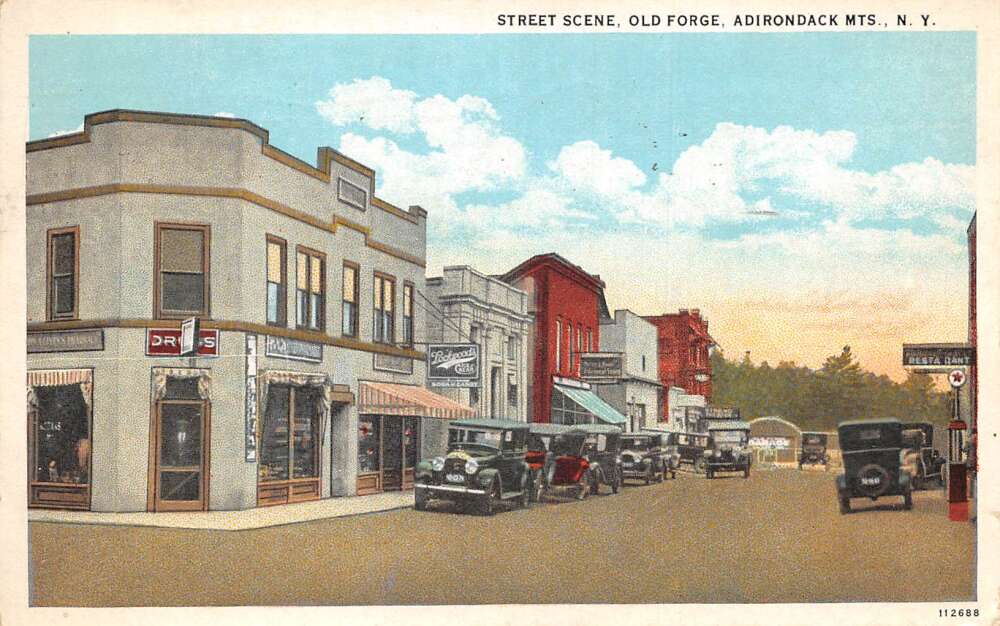 Old Forge New York Drug Store Business District Street Scene Postcard AA110057