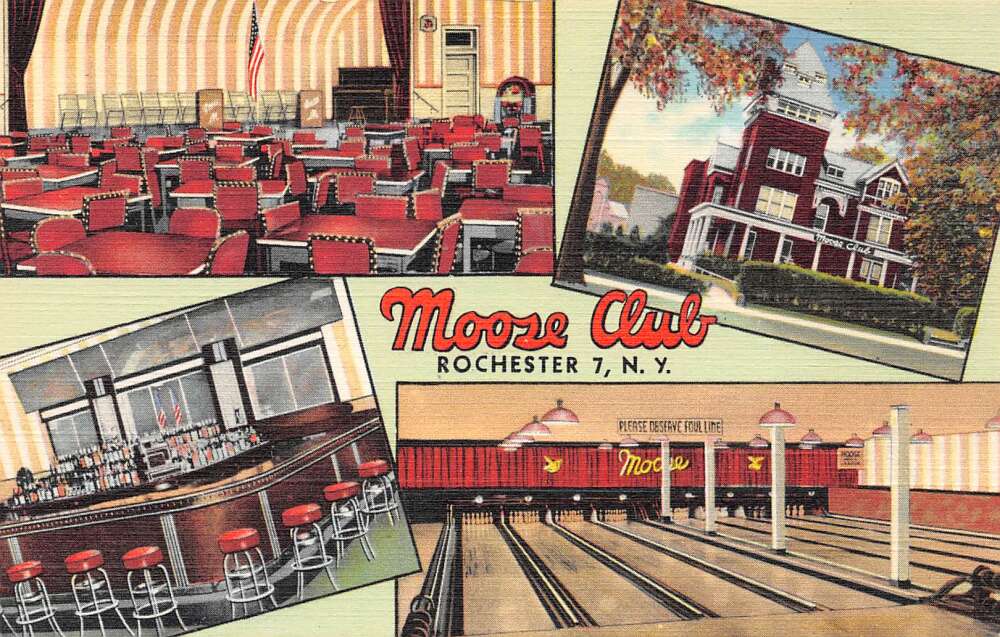 Rochester New York Moose Club, Multi-View Linen Vintage Postcard U11118